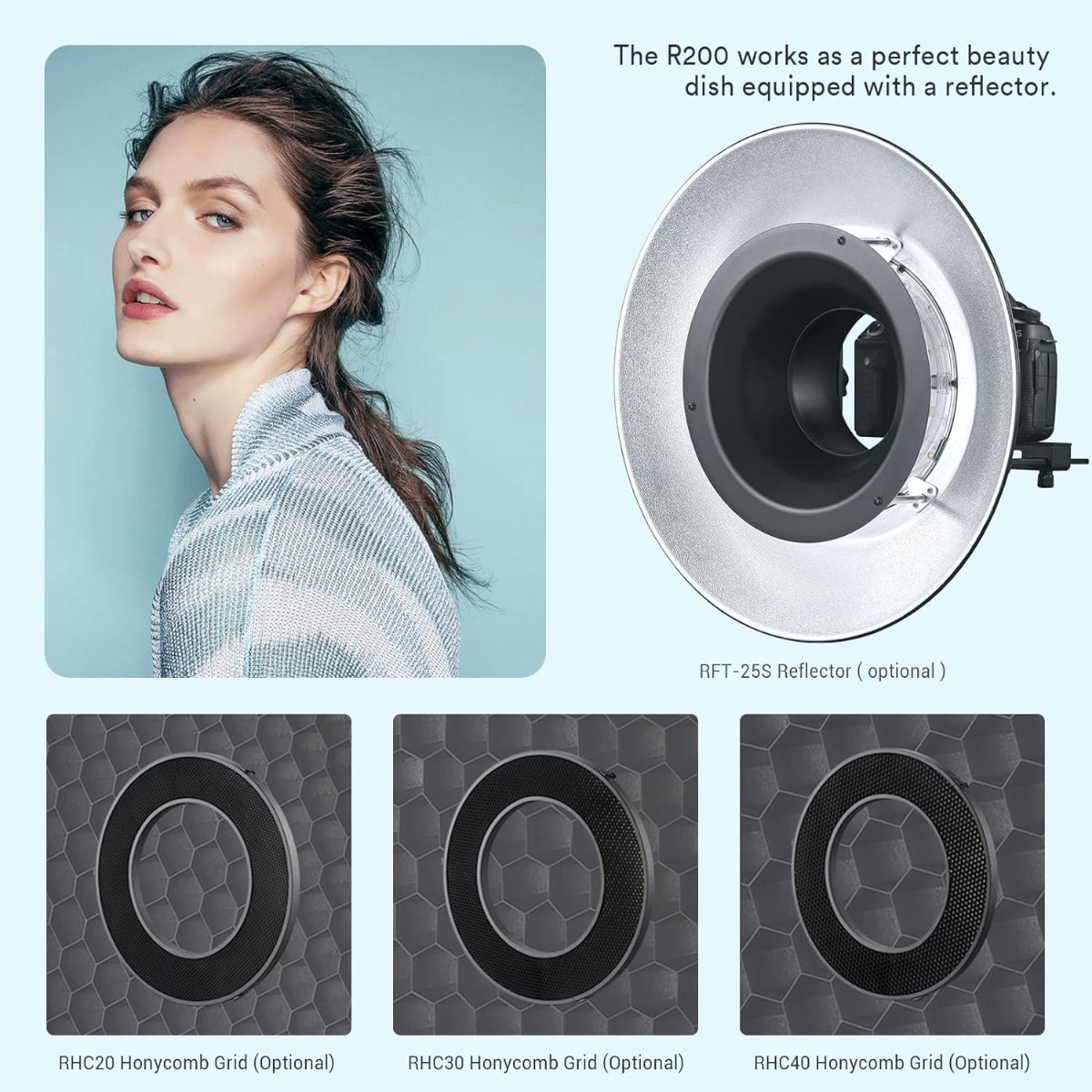 GODOX Honeycomb Grids are the perfect solution for photographers aiming to have complete control over the spread and direction of their R200 reflector. The RFT-25S Series Grids will open up a world of creative possibilities, enhancing your photography with your R200 reflector. Don't forget to check out the rest of the Honeycombs.